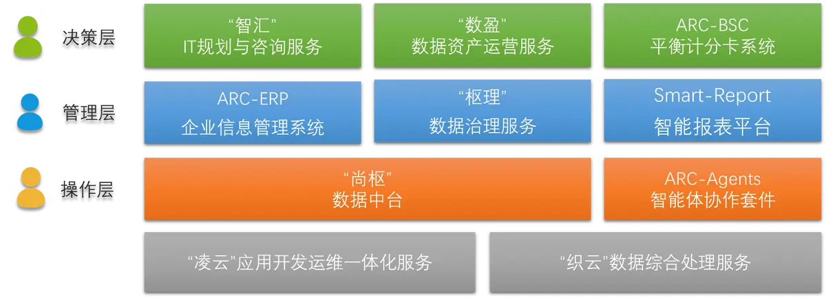 在決策層,“智匯”IT規(guī)劃與咨詢服務(wù),憑借專業(yè)團(tuán)隊(duì)對行業(yè)趨勢和技術(shù)生態(tài)的深度洞察,為企業(yè)量身定制契合發(fā)展戰(zhàn)略的IT架構(gòu)藍(lán)圖,明晰數(shù)字化路徑;“數(shù)盈”數(shù)據(jù)資產(chǎn)運(yùn)營服務(wù),挖掘企業(yè)數(shù)據(jù)價(jià)值,將分散數(shù)據(jù)轉(zhuǎn)化為可運(yùn)營、能創(chuàng)造效益的資產(chǎn),驅(qū)動(dòng)業(yè)務(wù)創(chuàng)新;ARC - BSC平衡計(jì)分卡系統(tǒng),以戰(zhàn)略為導(dǎo)向,從財(cái)務(wù)、客戶、內(nèi)部流程、學(xué)習(xí)與成長等維度,量化指標(biāo)、監(jiān)控進(jìn)度,助力科學(xué)決策 。